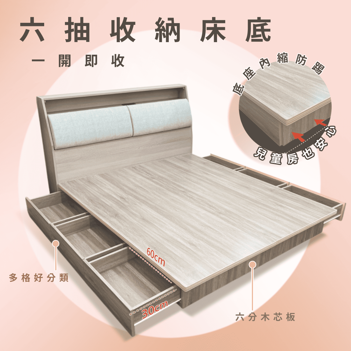 首頁床架 六抽收納內縮床底